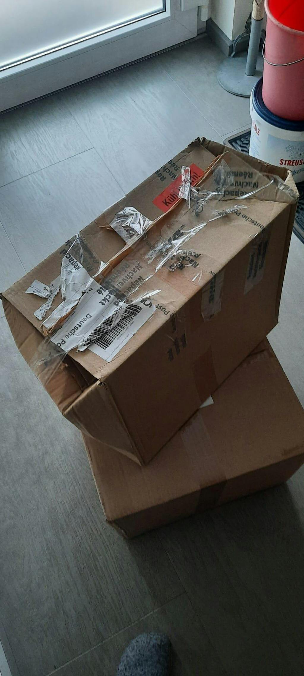 Was allerdings nicht so schön war, war die Verpackung. Die Sendung kam völlig verbeult und nachverpackt hier an. Leider war überhaupt kein Füllmaterial im Paket und durch die entstandene Unwucht im Karton wurde dieser beschädigt und öffnete sich. Ob dabei etwas verloren ging, kann ich nicht mehr nachvollziehen. Meine Bitte: Entweder das nächste Mal einen kleineren Karton verwenden oder innen etwas Füllmaterial beigeben, damit die Ware nicht zu herumgeschleudert werden kann. Das ist dann nämlich wirklich zu schade für den leckeren Inhalt
